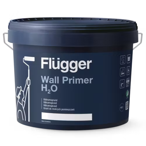 Flügger Wall Primer H2O har utvecklats som en del av Flüggers våtrumssystem vilket ger det ultimata skyddet mot vatteninträngning. Denna lättapplicerade grundfärg som i kombination med resten av H2O-systemet förhindrar smuts, damm och missfärgning som kan uppstå när vatten kommer på väggarna. Så om du letar efter en pålitlig lösning för att skydda ditt rum från fukt är Flügger våtrumssystem H2O ett riktigt bra val. Våtrumsgrundaren är blå, så man undviker ojämn täckning när den appliceras. Grundaren är ett viktigt steg i våtrumssystemet, och på detta sätt säkerställer du att hela ditt våtrum får den nödvändiga tätheten innan du applicerar Dekso 20 våtrumsfärg.